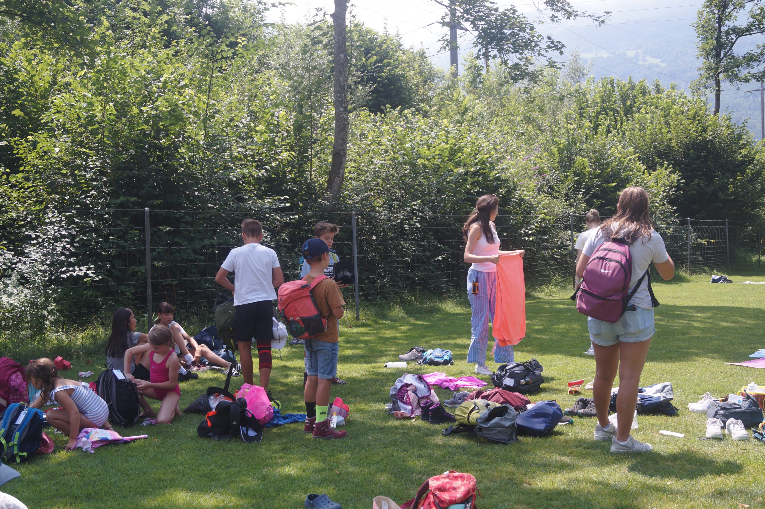 Nach knapp einer Stunde Reise suchten wir zur Abkühlung die Badi in Buchs auf. Dort hatten wir viel Spass im und am Wasser und konnten dabei auch neue Namen voneinander lernen. Nach dieser stärkenden Pause machten wir uns wieder auf in unsere Schiffe, die uns den letzten Abschnitt nach Tscherwald brachten. Dort kamen wir ohne Pannen oder sonstige Zwischenfälle an und konnten unser Lagerhaus entdecken.