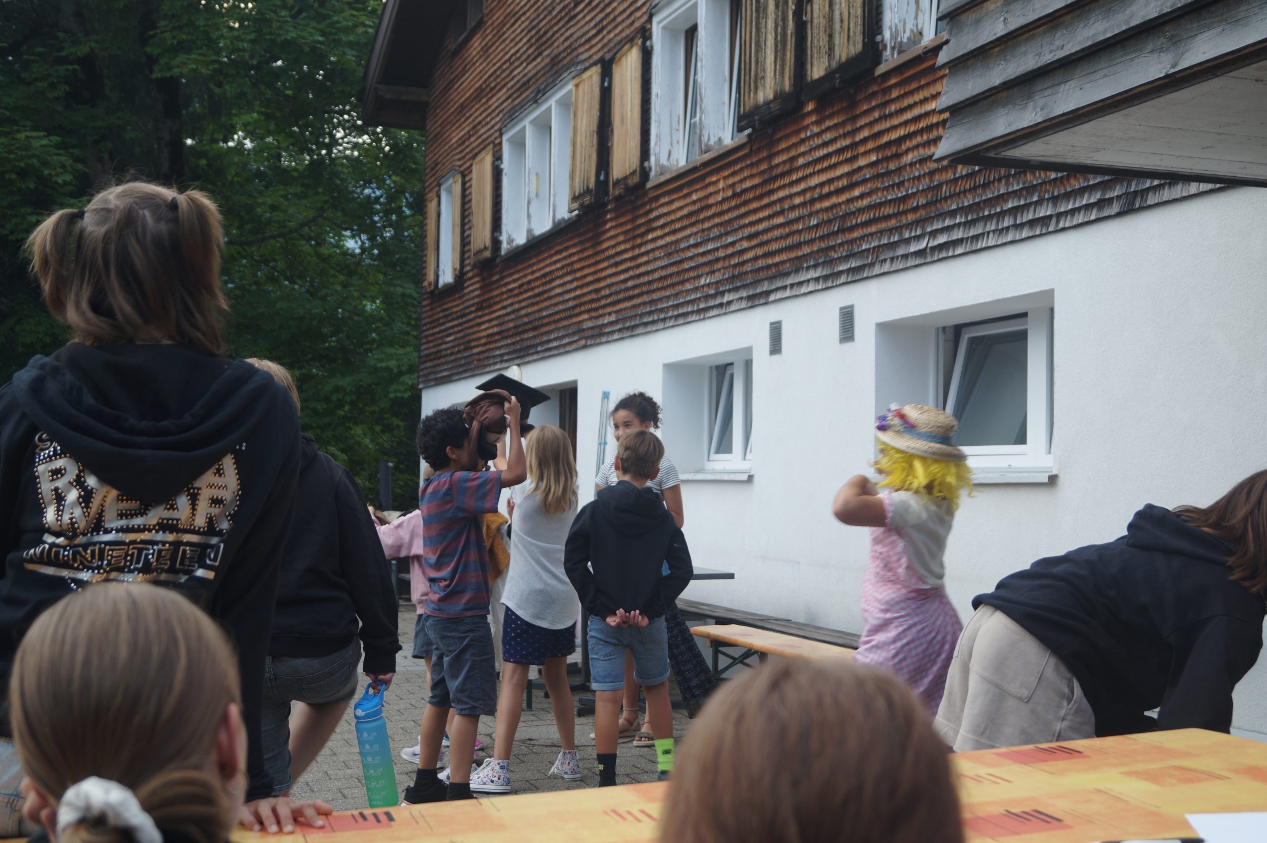 Nach einem feinen Abendessen, ein grosses Dankeschön an die Küche, lernten wir unsere erste Fähigkeit als Reporter kennen: Wie man sich mit einer guten Verkleidung unauffällig unter die Leute mischt. Mit viel Elan und Freude stürzten wir uns in diese Aufgabe. Insgesamt durften wir einen tollen ersten Lagertag erleben.