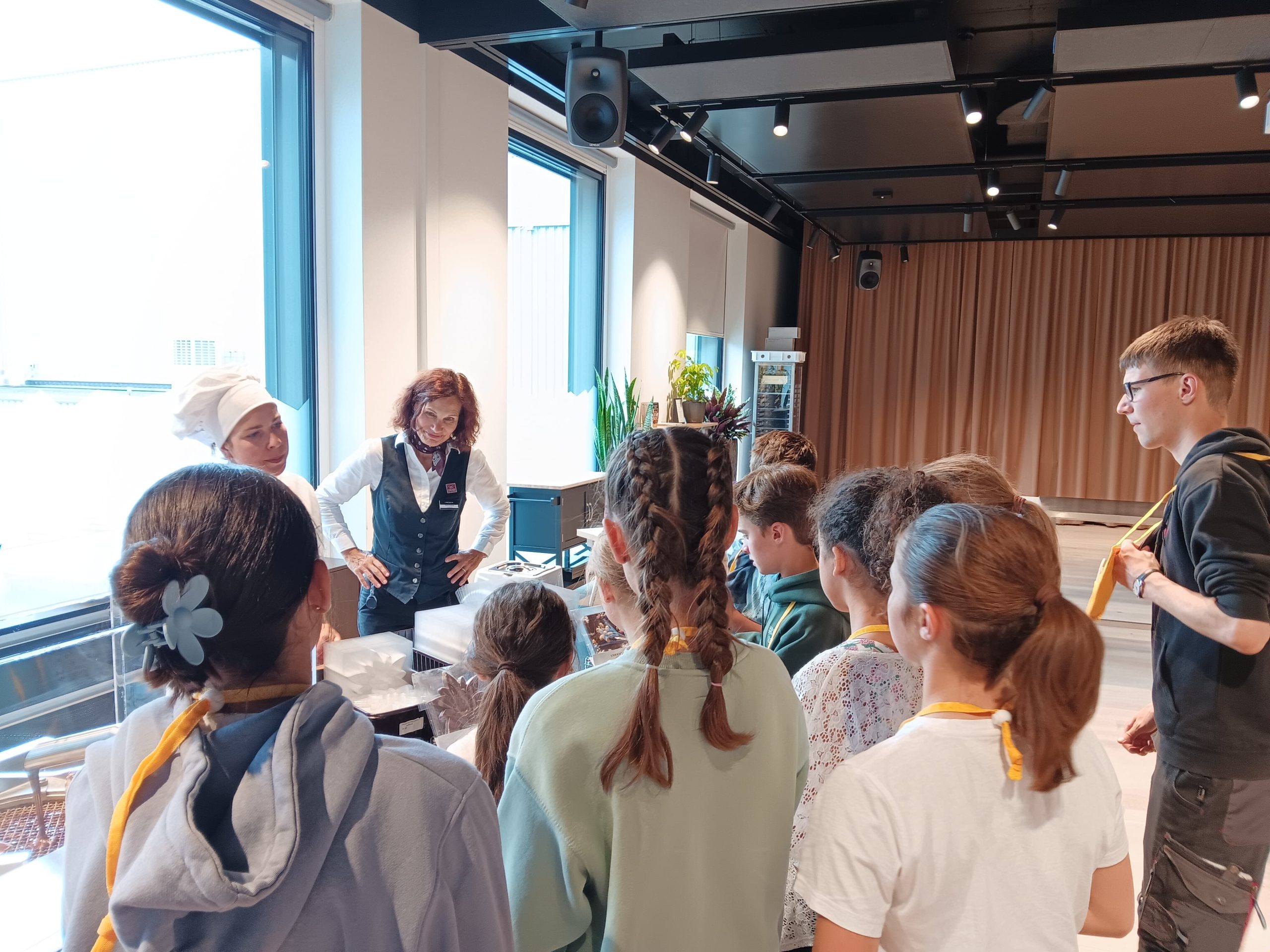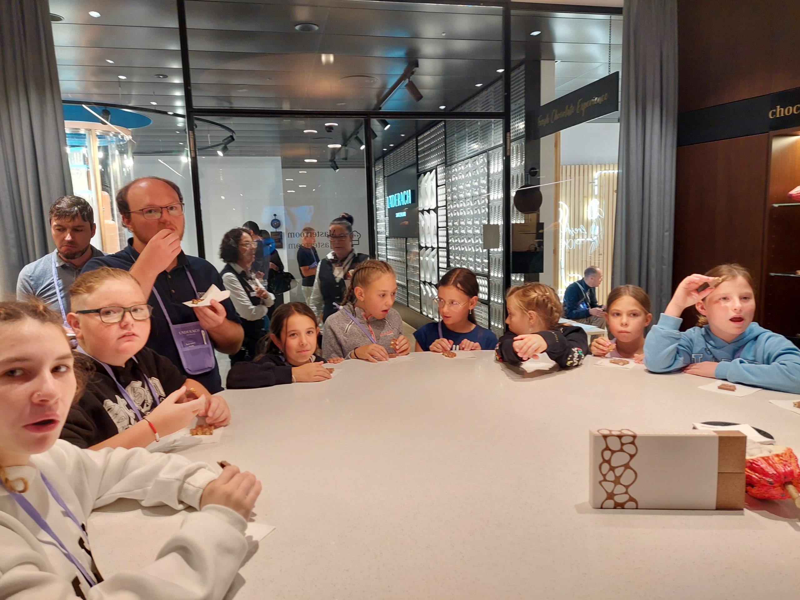 Am Nachmittag stand ein Ausflug auf dem Programm, der jedoch durch eine Fahrzeugpanne zur echten Herausforderung für das Leiterteam wurde. Trotzdem gelang es, mit allen Kindern und einigen Leitenden das «House of Läderach» zu erreichen. Dort wurden wir in drei Gruppen durch die Schokoladenausstellung geführt und durften sogar exklusive Einblicke in die Produktionshallen bekommen. Als besonderes Highlight konnten wir unsere eigene Schokolade gestalten.